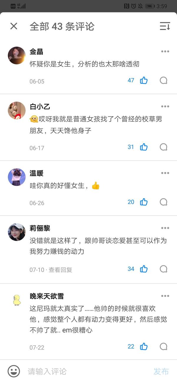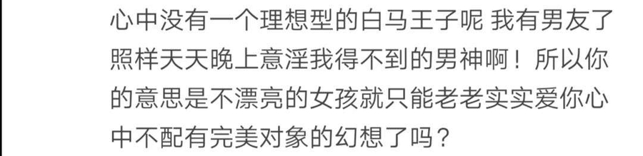 我从来不否认,从来不否认世界上真实存在这样的女孩,所以评论区那些说自己不看脸(如果你是第二种不看脸)的女性,不要急着喷我,我相信你们不看。