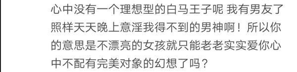 那么我们经常看到的“不看脸”普遍都是第一种:确实大多数女性的男朋友都算不上好看,但那往往并不是她们自己主观能动性的选择,而是不能和帅哥在一起的退而求其次,而本质上,他们对于自己的男友是嫌弃的: